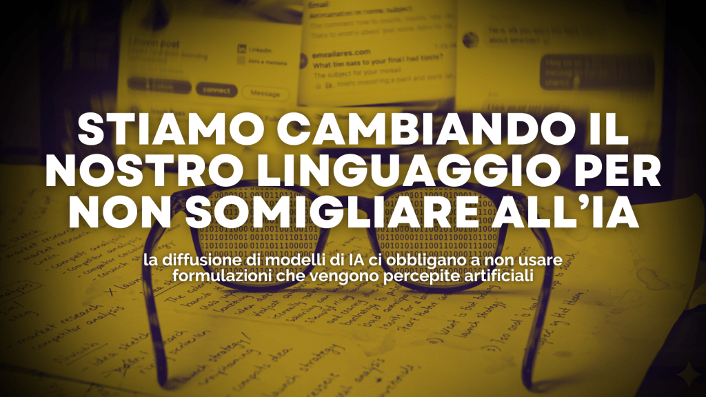In risposta alla freddezza e alla smisurata perfezione dell’AI, l’essere umano ha iniziato così a ricercare una sintassi più sporca, con strutture grammaticali meno complesse e con refusi lasciati volutamente nel discorso per rivendicare la propria identità – e umanità. Questa dinamica, questa forma di resistenza stilistica, fa sì che l’uomo modifichi il proprio comportamento naturale a scapito della paura di una possibile catalogazione “non-umana”: si tratta del Reverse Turing Test, o test di Turing inverso.